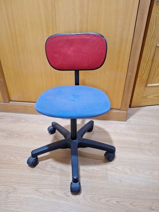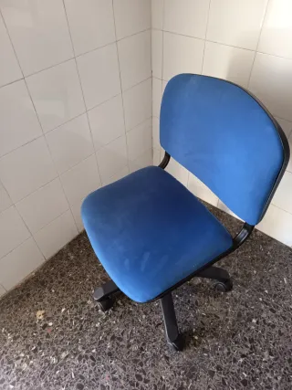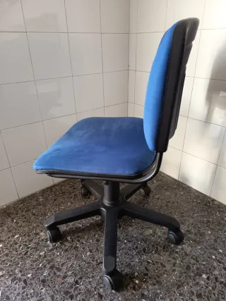 Tengo varias sillas de escritorio con base giratoria y ruedas para facilitar el movimiento, por si las quieres poner alrededor dé una mesa.Estado muy bueno, las vendo porque he cambiado la habitación del niño, y le he en puesto una más grande. - Tapizado en tela azul. - Estructura negra.