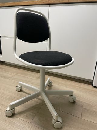 Silla de escritorio con ruedas ÖRFJÄLL de IKEA. - Regulable en altura - Asiento y respaldo tapizados en tela para mayor comodidad en la parte de los riñones - Base con 5 ruedas deslizables para fácil movilidad. - Hasta 110 Kg.