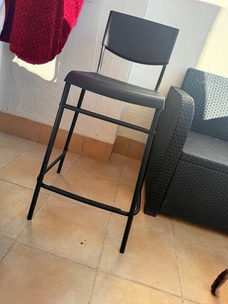 Silla de color negro, de diseño sencillo y funcional. Medidas: 92 cm de alto x 32 cm de ancho. Ideal para espacios pequeños, cocinas, zonas auxiliares, escritorios, habitaciones, trasteros, locales, academias o como silla extra para visitas.
