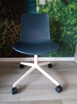 Silla de escritorio con un diseño confortable. No hago envíos, tienes que venir a por ella puedes verla sin compromiso. - Tapicería de piel. - Base de plástico con ruedas. -Las ruedas ya están un poco atascadas.