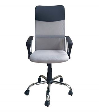 Silla de escritorio ergonómica y moderna. - Respaldo y asiento de malla transpirable. - Base de cinco ruedas para fácil movilidad. - Mecanismo de ajuste de altura.