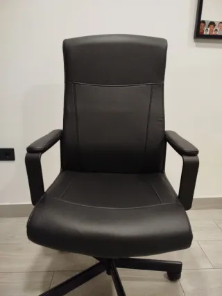 Silla de oficina con base giratoria y ruedas para facilitar el movimiento. Practicamente nueva y sin usar. - Diseño ergonómico para mayor comodidad. - Respaldo alto para soporte lumbar. - Asiento acolchado. Se recoge en domicilio.