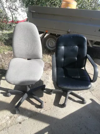 2 sillas escritorio, la roja tiene la tapiceria algo gastada, la azul de ikea esta usada, por separado 20€ cada una, juntas 40€.