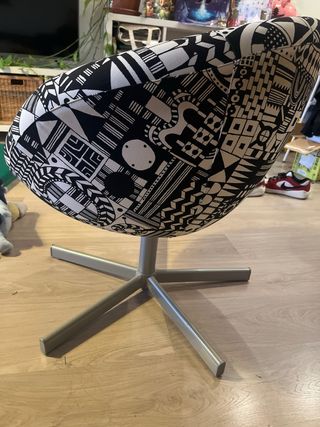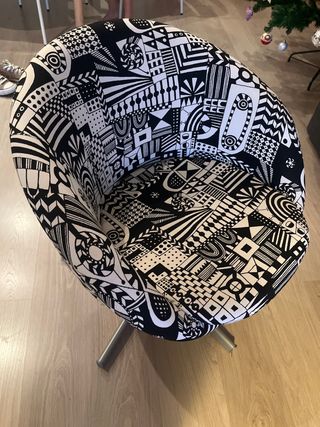 Silla de escritorio con un llamativo estampado en blanco y negro. - Tapicería de tela. - Base de metal.