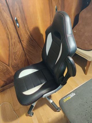 Se vende silla de escritorio. Es giratoria y está en buen estado, aunque presenta algunas marcas de uso. - Perfecta para oficina u hogar. - Estructura resistente. - Tapizado de piel sintética. - Se entrega en mano en Tarragona