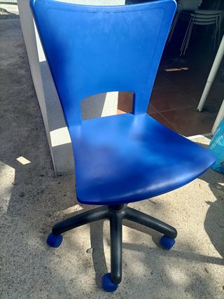 Se vende silla de escritorio. Es una silla giratoria de oficina, cómoda y en buen estado. - Estructura metálica. - Asiento y respaldo de tela. - Tapicería azul.