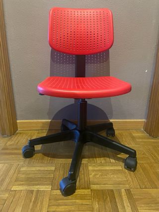 Silla de escritorio infantil en rojo y negro. Está en muy buen estado. Ideal para habitaciones de niñ@s