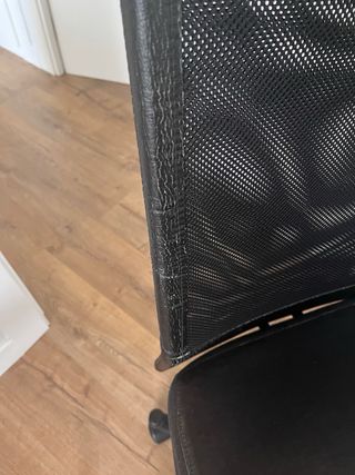 Silla de escritorio con el pequeño defecto que se ve en el respaldo