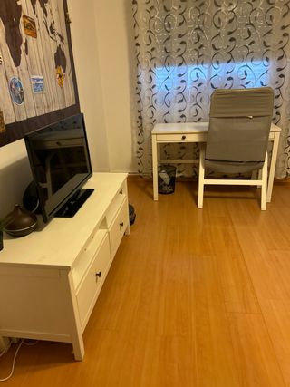 Mueble TV blanco y escritorio