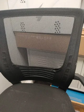Silla de escritorio con diseño ergonómico, ideal para largas jornadas de trabajo. - Respaldo de malla transpirable con alguna zona de tela rota. - Asiento acolchado para mayor comodidad. - Base con ruedas para fácil movilidad.