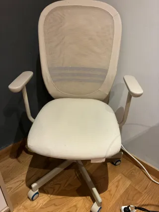 Silla sin ruedas, pero es algo que se puede cambiar si uno quiere, solo hace falta comprar el modulo con ruedas en ikea. En muy buen estado, comprada hace 2 años. La vendo porque me he comprado otra.