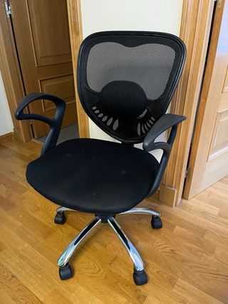 Silla de escritorio con base de metal y asiento de polipiel. - Diseño ergonómico. - Reposabrazos. - Ruedas para fácil movilidad. A recoger en el centro de Zaragoza