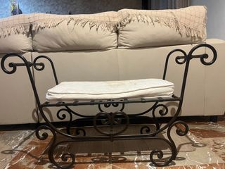 Banqueta de dormitorio de hierro forjado, el asiento algo desgastado, por lo demás todo perfecto, Cualquier duda pregunten sin compromiso.