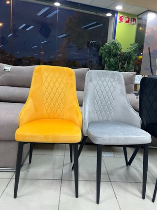 Sillas en terciopelo con diferente diseño y colores. Patas negras de hierro. Ideales para salones elegantes Puedes recibirlas contrareembolso por tan solo 20 € Sillas dos precios, 53 o 59 € depende el modelo
