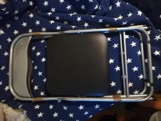 Silla fuerte de hierro con asiento .negro . Puede ser para casa , bar, ..para ese invitado demás y necesitas algo robusto que apenas ocupe espacio...ALto patas y asiento 47 asiento 39 cms. Solo hay una.