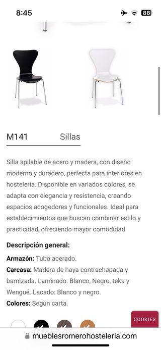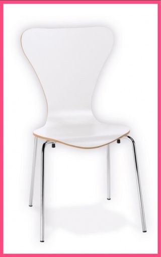 Silla moderna de diseño para cafetería o terraza. - Asiento blanco con borde de madera. - Ideales para hostelería o uso doméstico. - Asiento y respaldo ergonómicos. - Patas metálicas blancas. Lo descuento si llevas conjunto de las 7 sillas