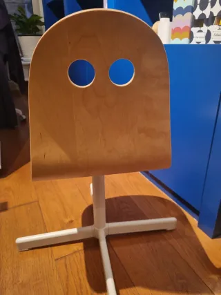 Silla de diseño infantil de IKEA, perfecta para habitaciones de niños. - Respaldo con dos agujeros decorativos. - Base de cuatro patas blanca. EN PERFECTO ESTADO - como nueva Estamos por Tarrongers/Cabañal