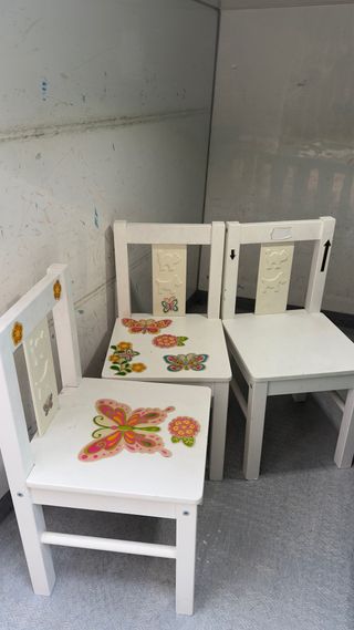 Silla de para niños pequeños muy bonita echa a mano 30e y silla ikea en buen estado 5e