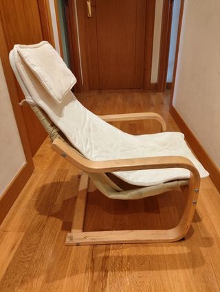 Silla de Ikea Poang tamaño niño. De Abedul, y funda color crudo.hay q reparar la parte interna que es una funda que tiene dentro. La madera está en buen estado. Hazme una oferta!!