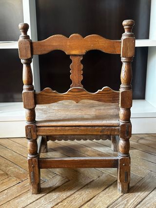 Preciosa silla antigua de madera maciza para niños. Ideal para decorar una habitación infantil o como pieza de colección. - Se encuentra en buen estado para sus años, mostrando una pátina natural.