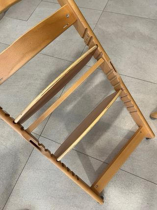 Preciosa silla de apoyo de madera para niños de la marca Safety 1st. Se encuentra en buen estado, aunque necesita una pequeña reparación. - Perfecta para restaurar. - Incluye dos piezas sueltas que se aprecian en las fotos. - Ideal para manitas creativas.