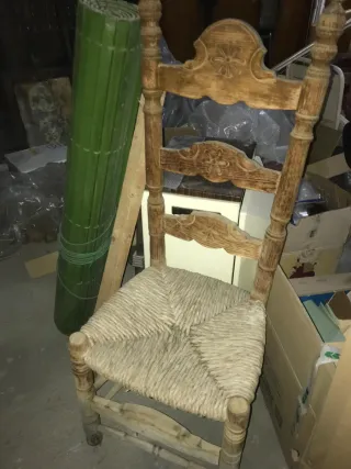 Conjunto de sillas con asiento de nea y estructura de madera. - Diseño rústico y natural. - Asiento tejido a mano. -precio 15 cada una hay 72