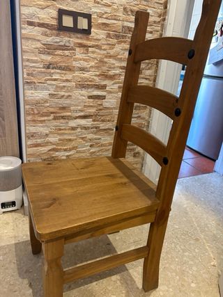 Silla de estilo rústico, ideal para dar un toque acogedor a tu hogar. - Fabricada en madera de pino. - Diseño con respaldo de tres lamas.