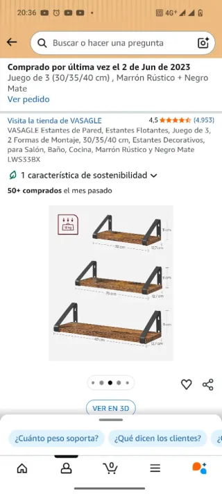 Conjunto de tres estantes flotantes con un diseño moderno y rústico. Son perfectos para organizar y decorar cualquier espacio. - Medidas: 30 cm, 35 cm y 40 cm de largo. - Profundidad: 12,7 cm. - Altura: 11 cm. - Carga máxima: 10 kg. MESA Y SILLAS TAMBIEN A LA VENTA. MAS EN MI PERFIL
