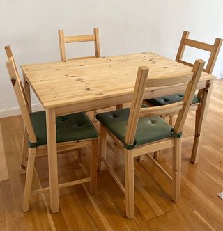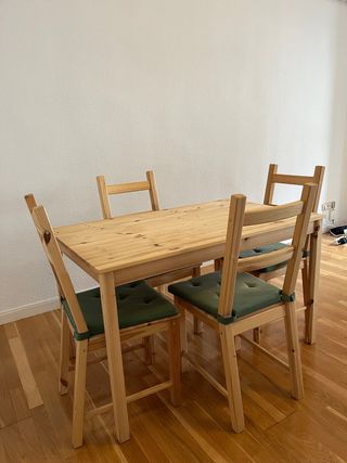 Mesa Comedor Madera, 4 Sillas + cojines