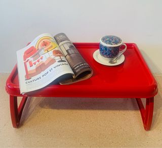 bandeja de cama reclinable Guzzini Partner, un clásico del diseño italiano de los años 70-80 diseñado por Luigi Massoni. Material: Fabricada en plástico ABS de color rojo. Funcionalidad: Cuenta con patas plegables a presión y superficie reclinable, ideal para desayunar, leer o trabajar en la cama o el sofá. Estado: nueva, en su envoltorio y caja original. Hago envíos portes a cargo del comprador. Entrega zona Maresme o Barcelona, a coordinar. IG @caholitaantiques Ikea,maison,dorado,antiguo,madera,caña,vintage,bambu,estante,balda,oleo,pintura,jarrón,candelabro,forja,hierro,silla,roble,mimbre,taula,jardinera,farol,mesilla, zara