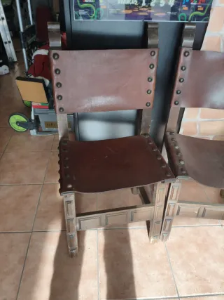 Se venden 4 sillas antiguas de madera color marrón oscuro, estilo vintage. Son robustas y resistentes, ideales para comedor, decoración retro o restauración. ✔️ Estructura sólida de madera✔️ Diseño clásico con detalles tallados✔️ Buen estado general (ver fotos)✔️ Perfectas para decoración vintage o rústica Precio por el lote de 4 sillas. Entrega en mano. Precio a consultar