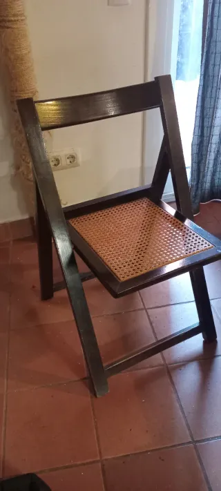 Silla vintage madera plegable mimbre
