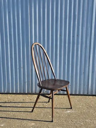 Silla de comedor Windsor de Lucian Ercolani para Ercol, años 60. Tiene algún signo por el paso del tiempo como se aprecia en las fotos. Alto asiento 43 cm.