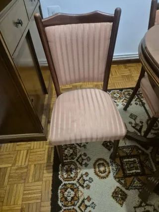 Sillas comedor vintage madera y tela rosa (6)