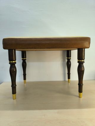 Banqueta vintage tapizada madera y cuero
