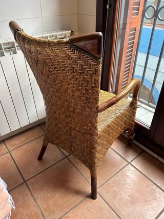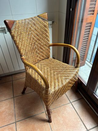 Silla de ratán trenzado con estructura de madera, respaldo alto y brazos curvados, en muy buen estado, sin roturas en el tejido. Tiene un diseño vintage/colonial que queda genial en cocina, salón, galería o terraza cubierta, y combina con casi cualquier estilo de decoración. Es ligera pero sólida, perfecta como silla de lectura o como pieza especial junto a una mesa auxiliar o escritorio. Transporte a cargo del comprador.