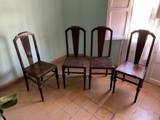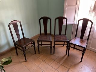 Se venden cuatro sillas de madera. Son de color marrón y tienen un estilo vintage. - Ideales para comedor o sala de estar. - Se encuentran en buen estado. - Listas para usar.