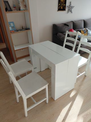 Mesa cocina abatible con 4 sillas.