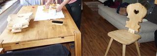 Mesa de madera pino cuadrada + 2 sillas