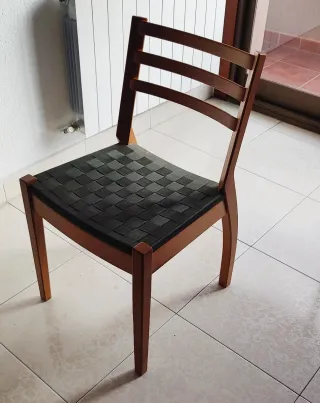 Conjunto de sillas de madera con un diseño clásico y elegante, perfectas para cualquier espacio. - Estructura robusta y duradera. - Diseño cruzado en el respaldo. - Asiento cómodo y ergonómico. 5€ cada silla (2 unidades)