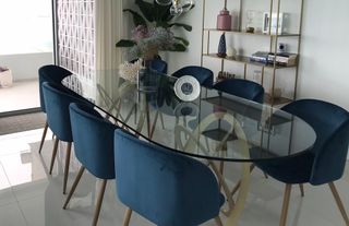 Sillas de comedor de terciopelo azul