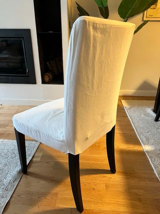 Se venden 6 sillas de comedor con fundas de tela. 20€/silla. - Fundas desenfundables para facilitar la limpieza. - Estructura de madera. - Tapicería de tela. - Ancho (cm): 39 - Altura (cm): 93 - Largo (cm): 53