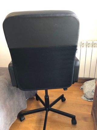 Silla de oficina cómoda y funcional, ideal para tu espacio de trabajo. Se vende por mudanza. Regalo respaldo lumbar para hacerla más ergonómica. Ancho de sillón 50cm. Fondo de sillón 44cm. Altura reposaespalda 80cm. Silla de oficina que se vende por mudanza. Funciona 100%, rueda bien, base giratoria, altura ajustable, con reposabrazos, para pasar horas trabajando sin dañarte espalda. Puedes probar en portal para comprobar rodaje y si te es cómoda antes de llevártela. Si estas busando silla sin complicarte mucho y te pilla a tiro de recoger, no lo dudes, valdría más. Venta en mano en Madrid, zona ventas.