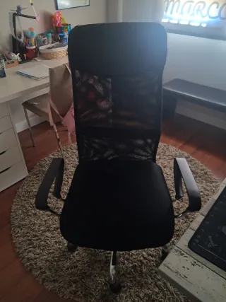 Silla de oficina ergonómica de IKEA, modelo MARKUS en color negro. - Respaldo alto con malla transpirable. - Asiento acolchado. - Base con ruedas para fácil movilidad. Muy poco uso. Está sin ninguna marca ni signos de desgaste. Escritorio de oficia a la venta en el perfil. Pregunta para precio conjunto!
