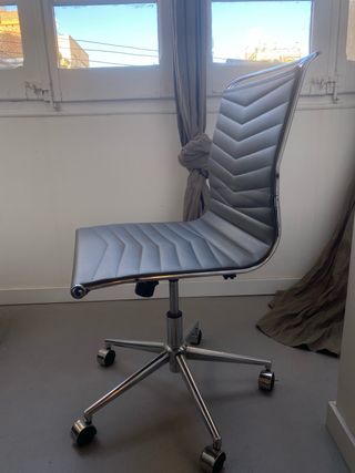 Silla de escritorio con un diseño moderno y confortable. - Respaldo alto. - Brazos cromados. - Base con ruedas para fácil movilidad. Muy poco uso. Pvp nueva de 140€. Escucho ofertas.