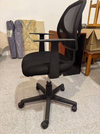 Silla de oficina semi nueva, en perfecto estado y lista para usar. Muy cómoda para estudiar, teletrabajar o pasar horas delante del ordenador sin problema. ✔️ Sin desperfectos ✔️ Ruedas como nuevas, giran y deslizan perfectamente ✔️ Sistema de suspensión impecable, sube y baja sin fallos ✔️ Asiento acolchado y respaldo ergonómico ✔️ Giro 360º Se vende por cambio de mobiliario. Siempre cuidada y usada en interior. Una opción ideal si buscas una silla funcional, cómoda y barata sin gastar de más. La pruebas y te la llevas.