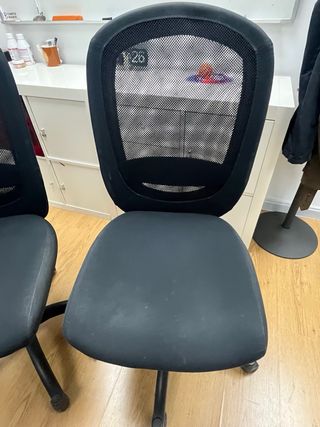 Silla de oficina con un diseño moderno y cómodo. - Tapicería de tela. - Base de metal con ruedas. - Respaldo envolvente. Precio unidad: 25€ Precio lote: 90€ 4 unidades