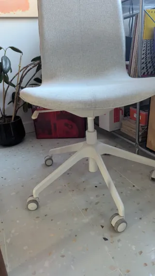 Silla de escritorio de Ikea muy bonita y cómoda. Tiene únicamente dos rascacitos en los laterales (ver fotos), pero por lo demás está como nueva.