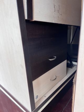 Conjunto de muebles de oficina de madera color marrón. Ideales para una oficina organizada y eficiente. - Incluye un escritorio amplio y dos sillas. - También se incluye una estantería de gran capacidad para archivar documentos. - Los muebles están en buen estado, listos para usar. Estamos en Sevilla.