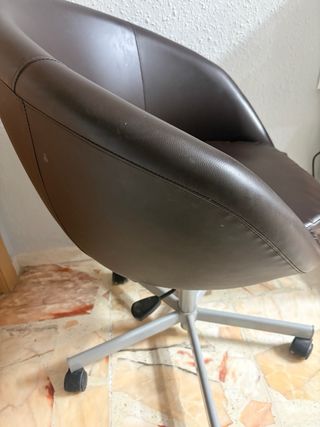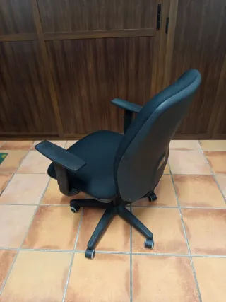 silla de oficina con ruedas, hidraulico funciona a la perfección, tiene desgaste del tejido en la parte superior como se aprecia en la foto. Ergonomía muy buena y coge bien la lumbar. Idonea para trabajar desde casa en remoto.